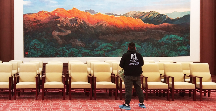 對北京某大會堂部分議事廳的甲醛、苯系物、TVOC等有害物進行治理。 符合CMA第三方檢測機構嚴格驗收標準。